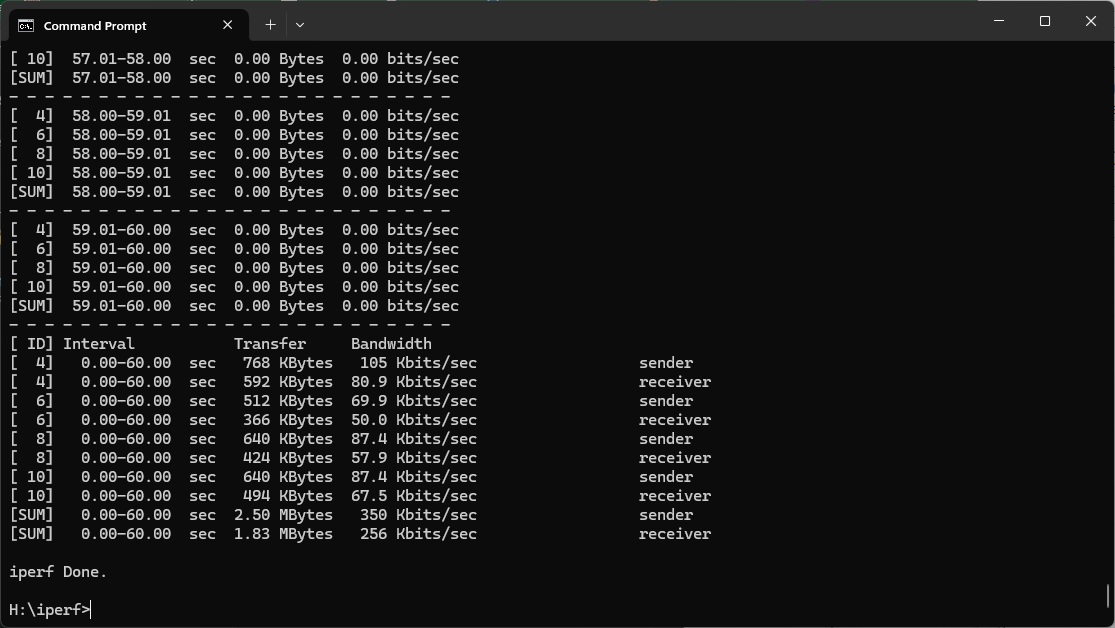 We used the open-source iPerf 3.1.3 software for testing, which can simulate multiple clients streaming at once. Five Windows systems were employed. Our desktop base was an Armari 32-core AMD Ryzen Threadripper workstation running Windows 11. For WiFi 7 testing, we used an Acer Swift 14 AI notebook, then a Dell XPS 17 notebook (for WiFi 6), a fourth was an MSI WS63-7RK (802.11ac) notebook, and finally an HP Folio 3 notebook (802.11n only – to show performance with legacy devices). The Acer and Dell notebooks and Armari workstation were running Windows 11 but the other two notebooks were Windows 10-powered.