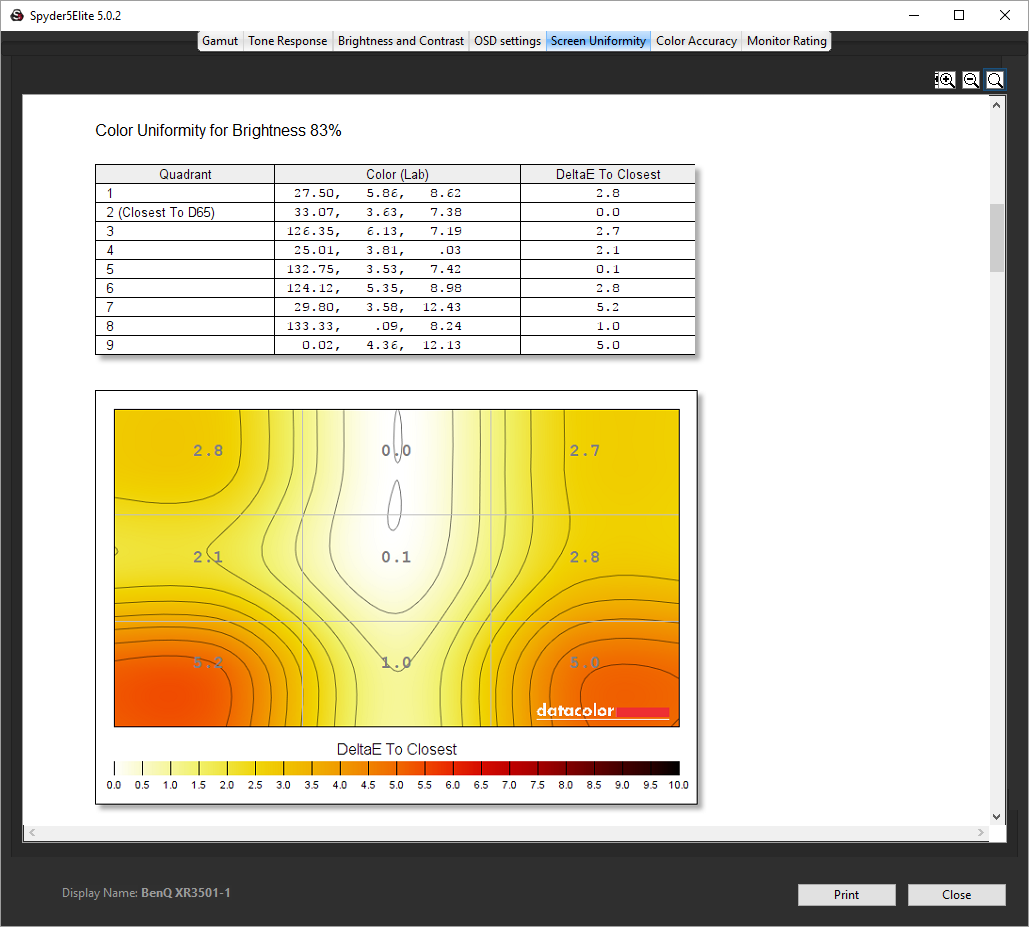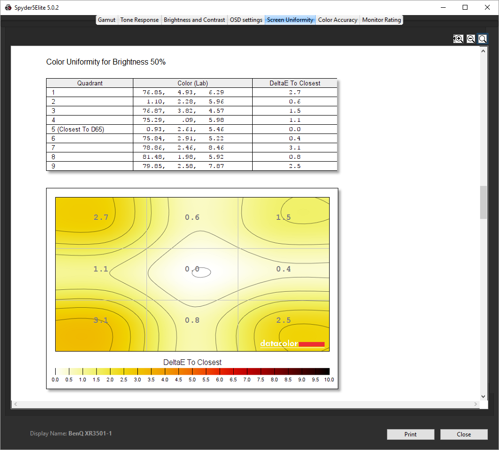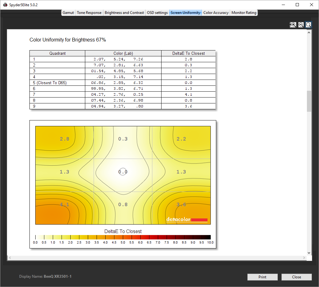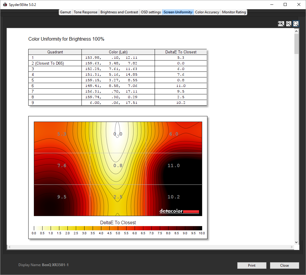 - The brightness deviation across the panel.