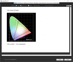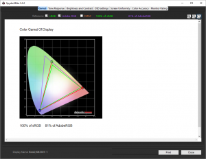 First off, the uncalibrated results show a very respectable gamut, with a complete 100 per cent sRGB coverage and very good 81 per cent Adobe RGB.
