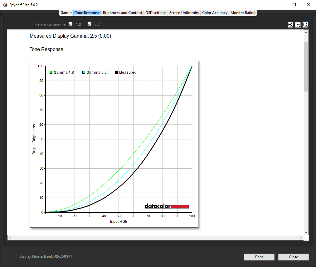 - The exact gamma levels, with a comparison against preset settings in the OSD.