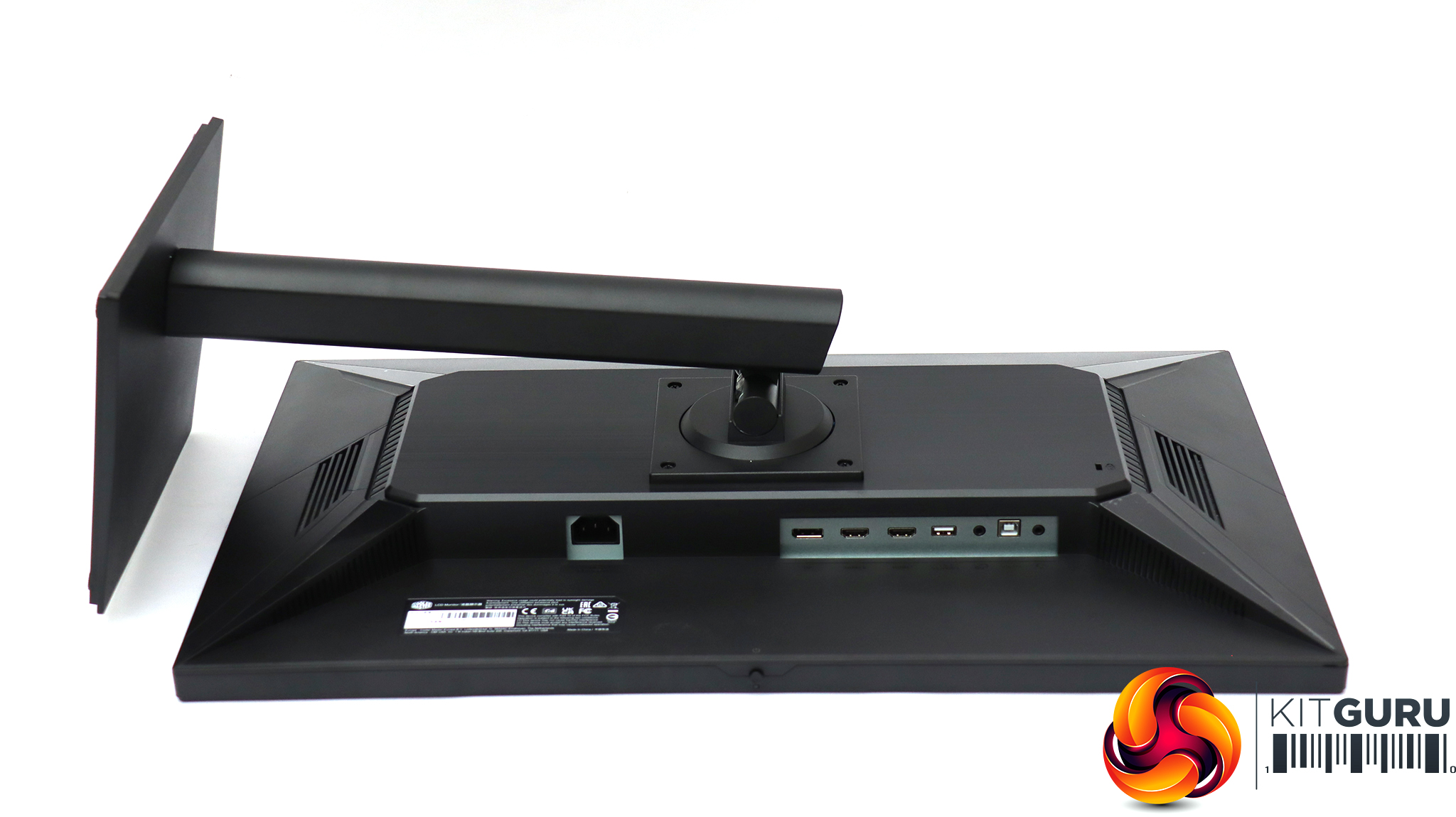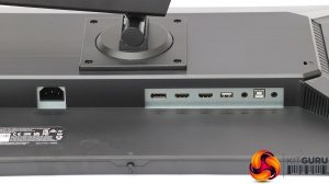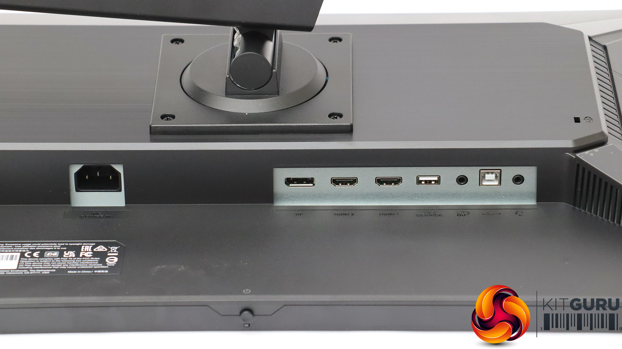 Apart from the power socket, all the ports are on the left side of the screen on the rear (when looking from the front). There's a DisplayPort 1.4 connection, which is necessary for the 180Hz refresh (DisplayPort 1.2 maxes out at 144Hz at 2,560 x 1,440 resolution). The two HDMI 2.0 ports also have a 144Hz limit at the native panel resolution, so DisplayPort is the connection to use to get the most out of this screen's capabilities.