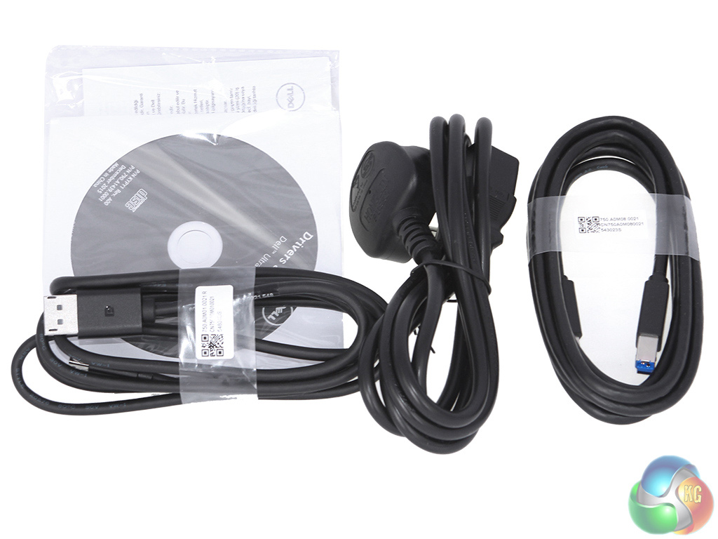 Inside the box, you get a kettle lead power cable, as the power supply is built in, plus DisplayPort to mini-DisplayPort, and a USB upstream cable so the built-in hub can be connected to your PC. But apart from a driver CD and some documentation, that’s it.