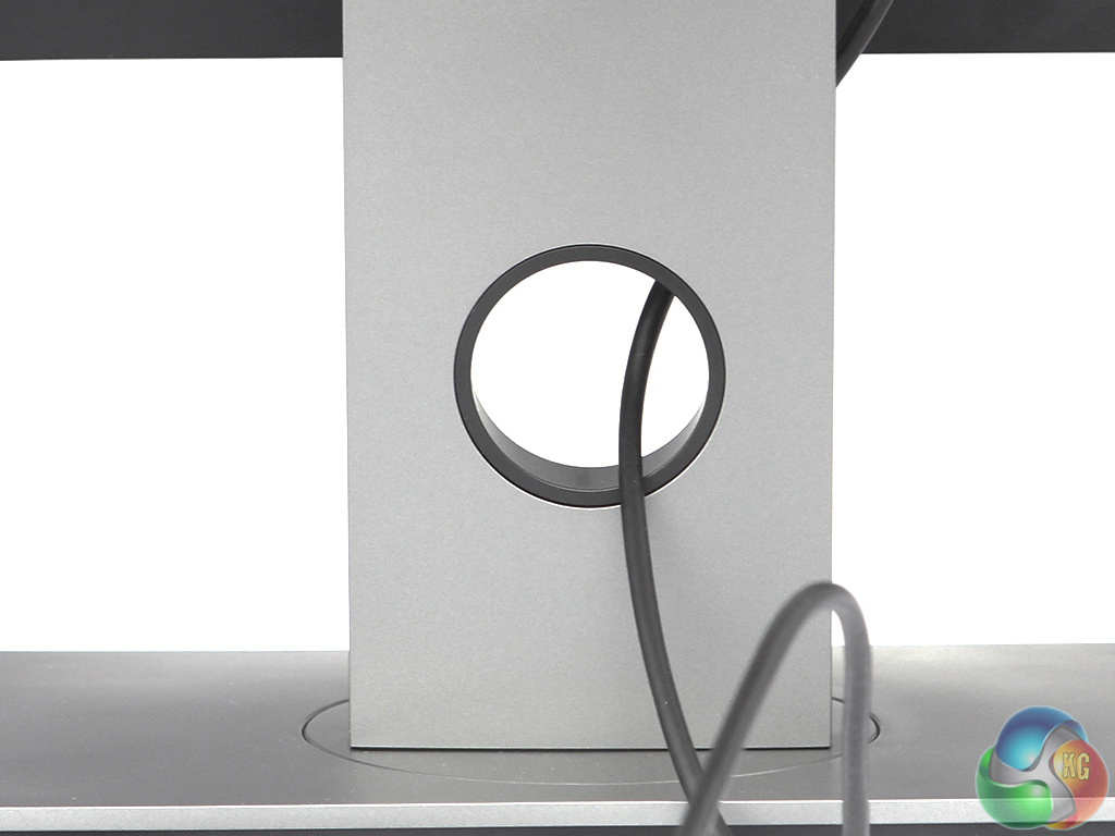 There is no explicit cable management built in, but we suspect the hole in the stand is intended for this purpose.