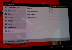 The last option in the main menu includes turning on support for Display Data Channel/Command Interface (on by default), which allows the host computer to send configuration commands to the monitor.