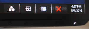 Press any menu button and the primary context-sensitive strip appears. The three default options include preset modes, input source, and then the main menu for configuring the detailed settings.