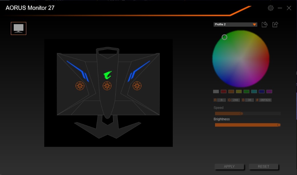 With the USB upstream plugged in and the OSD Sidekick application installed you can configure most of the monitor settings from your PC, including more detailed control over the RGB lighting on the rear of the screen.