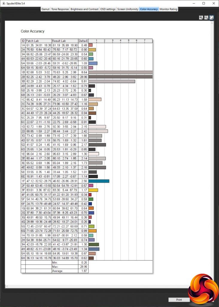 An average delta of 1.87 means very accurate colour, but we expected more from an IPS panel. So as usual we fired up the SpyderX to see if we could get there.