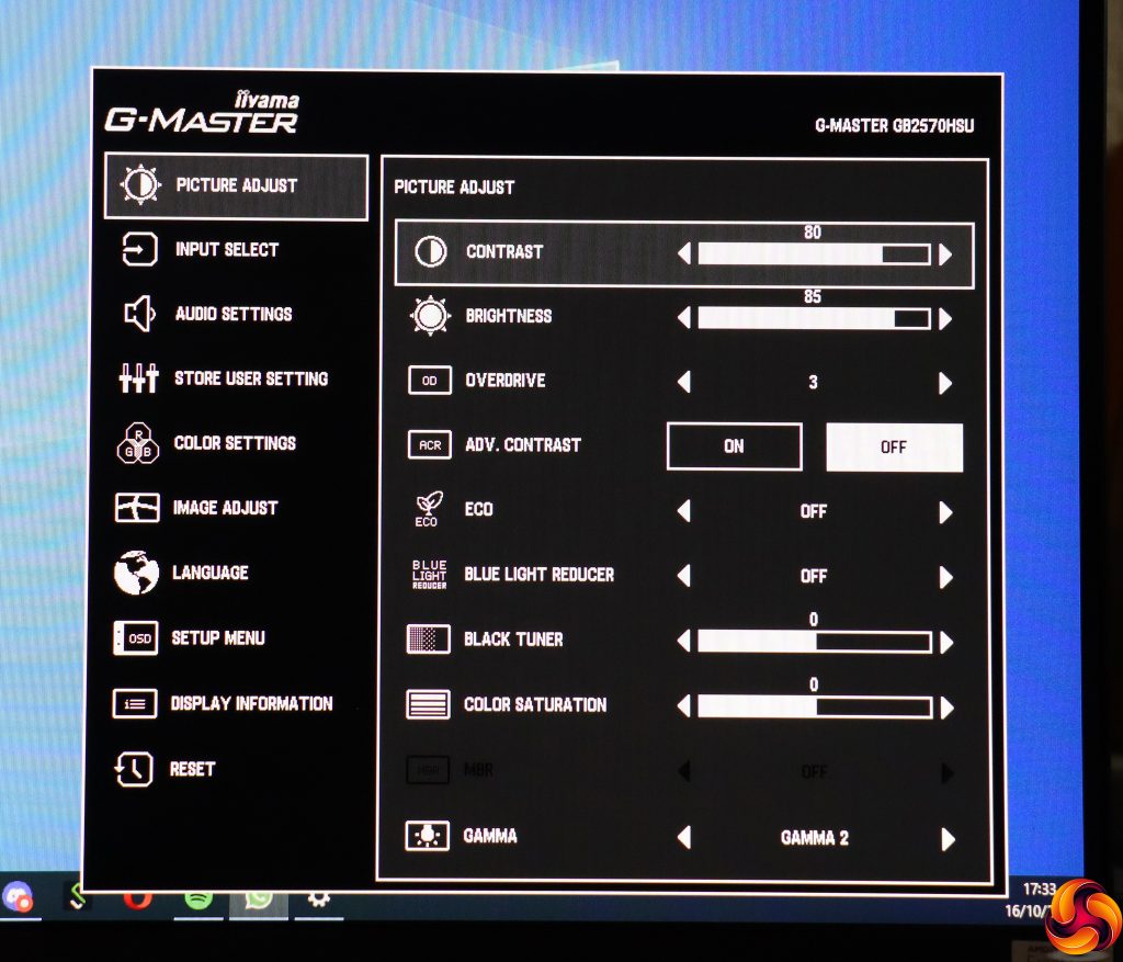 The first option is Picture Adjust, which has all the sundry quality configurations, starting with contrast and brightness. You can adjust pixel overdrive from 1-5, with 3 the default. Advanced Contrast is an artificial contrast boost.