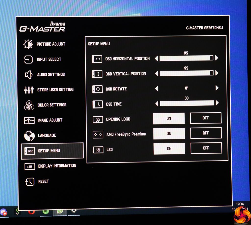 Setup Menu is where you configure the way the OSD appears, but also whether you see a logo when you turn the screen on, whether the power LED is on, and also (strangely in this context) it lets you enable and disable AMD FreeSync Premium adaptive sync.