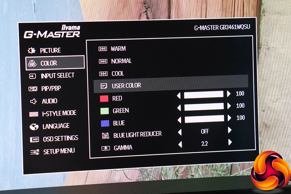 The next main menu section is Color. Here, you can choose between warm, normal and cool presets, or define your own colour balance via red, green and blue levels. You can also define three levels of blue light reduction beyond Off to give your eyes a rest. There are three gamma presets. The 2.2 one is the default, as expected, but you can also select 1.8 and 2.6. These are quite large steps between the options.