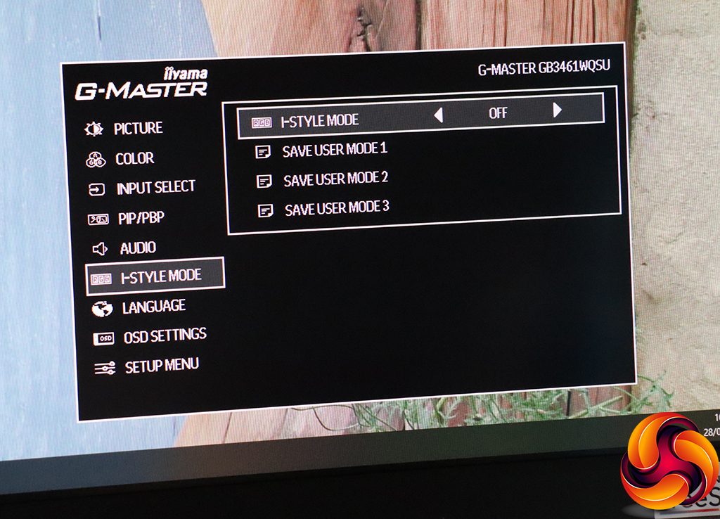 The monitor's I-Style Mode presets are rather buried, and you can't customise the quick menu to operate these rather than volume or eco modes. The I-Style Modes include Off, Standard, Sport, FPS, Strategy, Text, and there are three user slots you can use to save custom presets.