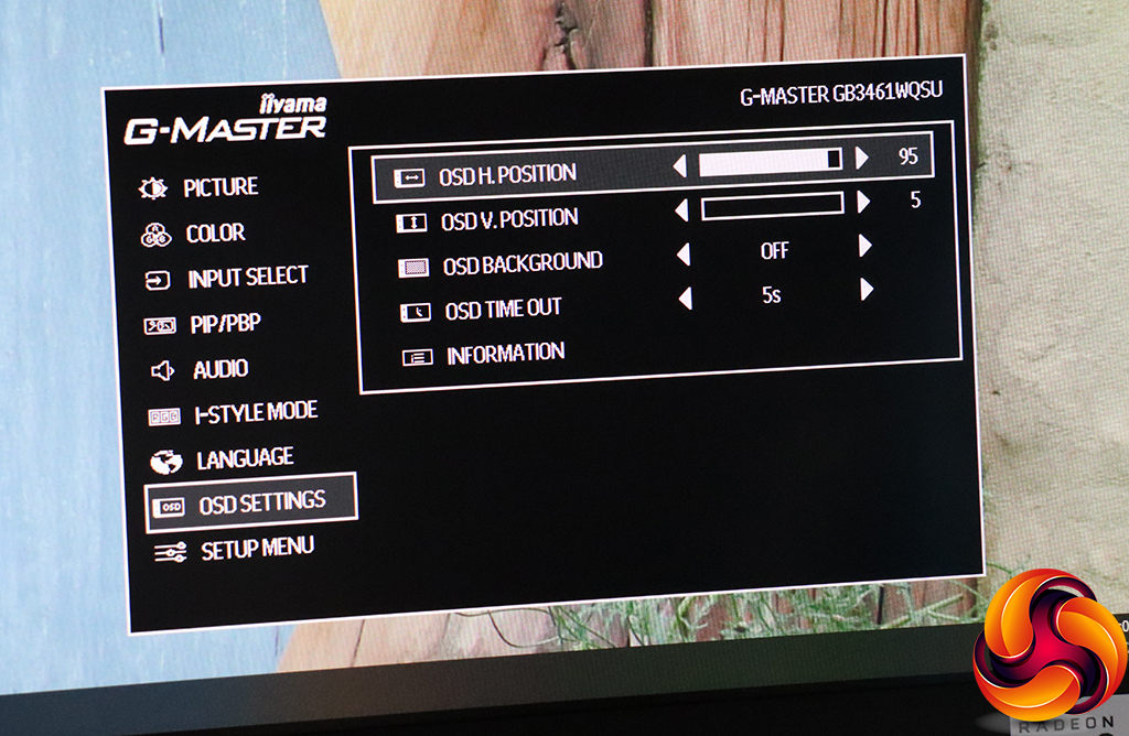 Under OSD settings you can change the position of the OSD and how long it stays onscreen, as well as call up information about the current screen signal input.