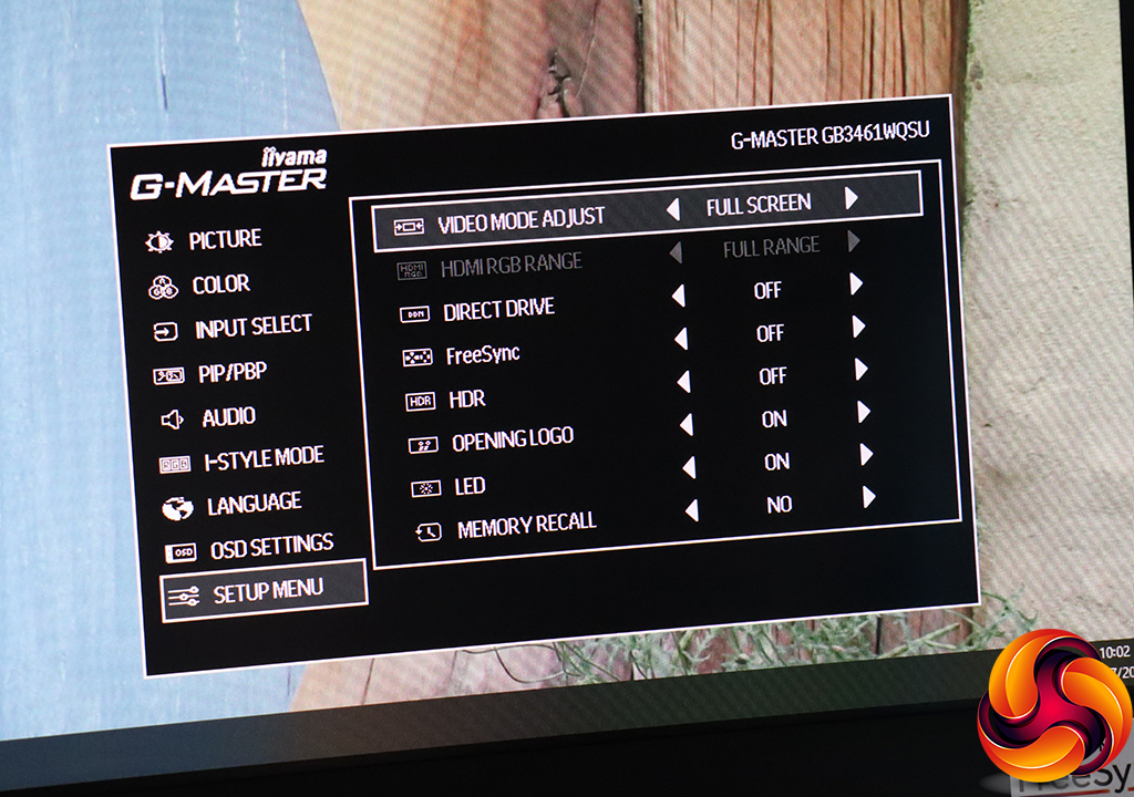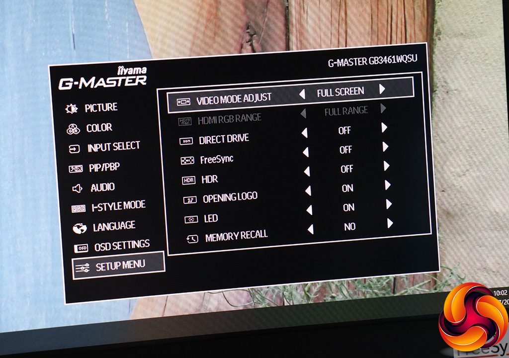 Finally, the Setup Menu lets you configure the way the video input is displayed, with 17, 19, 19.5, 21.5, 23 and 24in options. The first two are 5:4 aspect and others 16:9. With an HDMI input, you can choose whether to use the full or limited RGB range. You can enable or disable FreeSync and HDR, whether the opening logo is displayed as well as the power LED. Memory recall is actually the factory reset option.