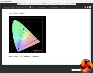 Our main test involves using a DataColor SpyderX Colorimeter to assess a display’s image quality. The device sits on top of the screen while the software generates colour tones and patterns, which it compares against predetermined values to work out how accurate the screen is.