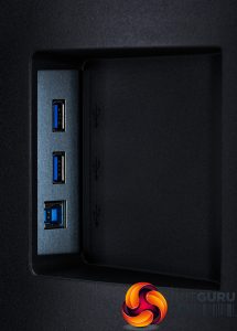 The rear underside is home to the usual kettle lead power input, plus two HDMI 2.0 connections and a single DisplayPort 1.2. On the side is the upstream connection and two downstream Type A ports for the USB 3.0 hub, one of which has fast charging.