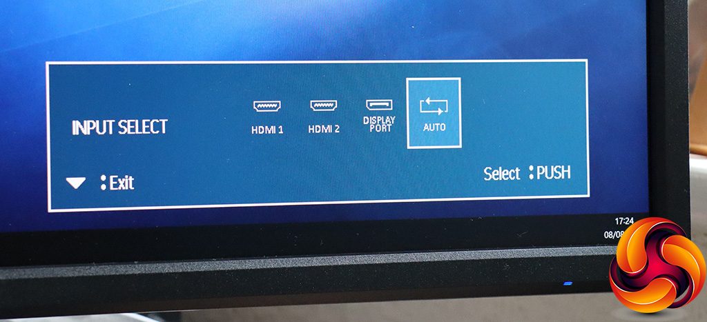 Pushing the joystick up reveals the quick menu for manually selecting from the three inputs.