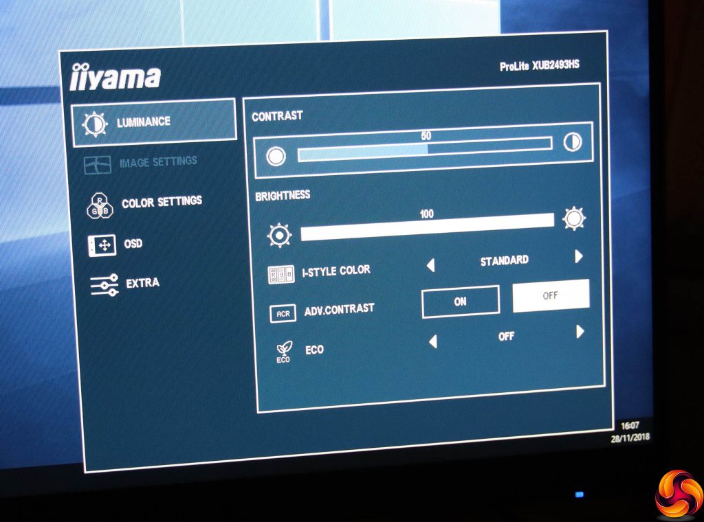 You can also toggle Advanced Contrast, which is Iiyama's take on an adaptive system that varies the backlight intensity to increase the perceived contrast range. The Luminance section also provides another route to the ECO modes.