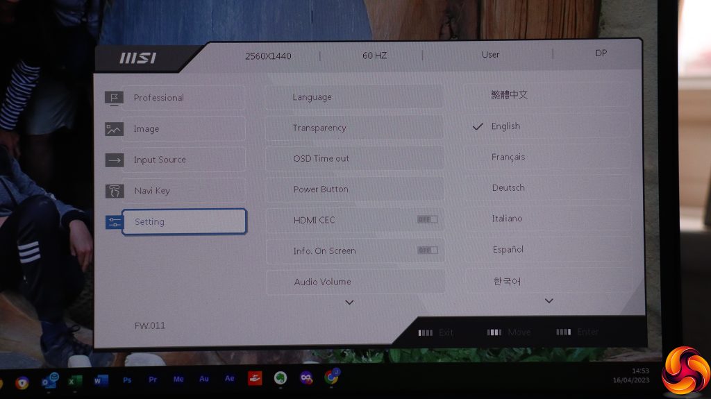 Overall, while there is enough here for an everyday professional monitor, there are a few omissions. With a 2,560 x 1,440 resolution, there are enough pixels for picture-in-picture, which is an option on some MSI screens. There also doesn't appear to be any way to choose a different audio source from the one supplying the video input. There are no gamma options, either.