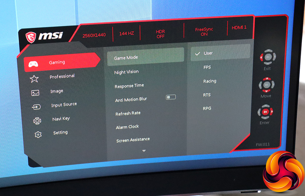 Overall, the OSD isn't overly full of features, for example lacking gamma settings, but it's also quite focused and well organised for the intended gaming user, with Gaming OSD 2.0 making the functions very simple to configure. Our usual MSI question about separating game and standard preset sections remains, however. They would be better off in one list.