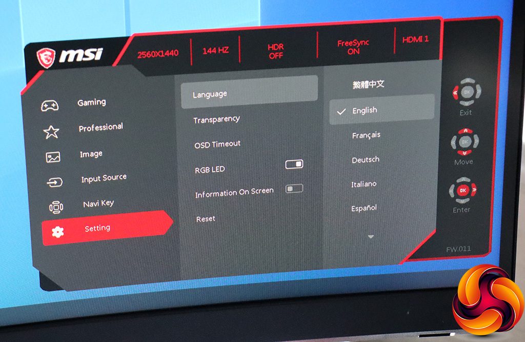 Finally, Setting is where you choose the OSD language, and other characteristics of its appearance. You can also reset everything to default here.