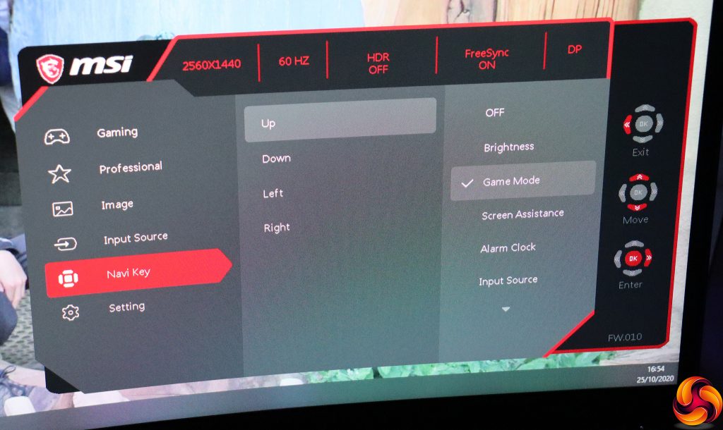 There are main menu options for video inputs and Game Modes because under Navi Key, you can change which functions appear when you press the joystick in each of the four directions. This is handy for configuring fast access to the functions you use the most if they're not the default ones.