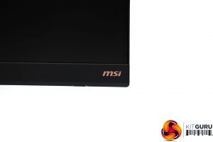 The menu is exclusively operated with a joystick on the rear. This has become a pretty standard system, although some manufacturers also provide some buttons. MSI doesn't. But there is a separate power button on the bottom, rather than making this a function of the joystick as some manufacturers do, such as Samsung. There's also a G function button on the bottom left, which we'll discuss later in this review.