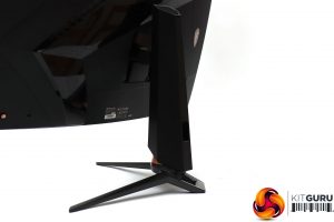 The 1800R curve is reasonably subtle, but still gives a screen this wide a “wraparound” sense where the edges are essentially in your peripheral vision, which is good for a sense of immersion. There are areas of copper finishing on the stand, which sets things back onto a classier footing.