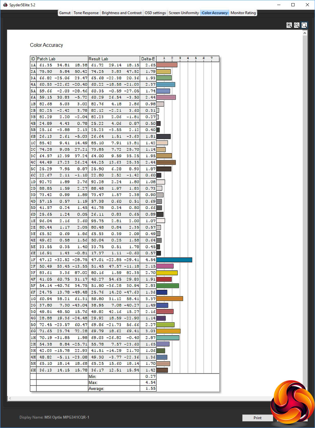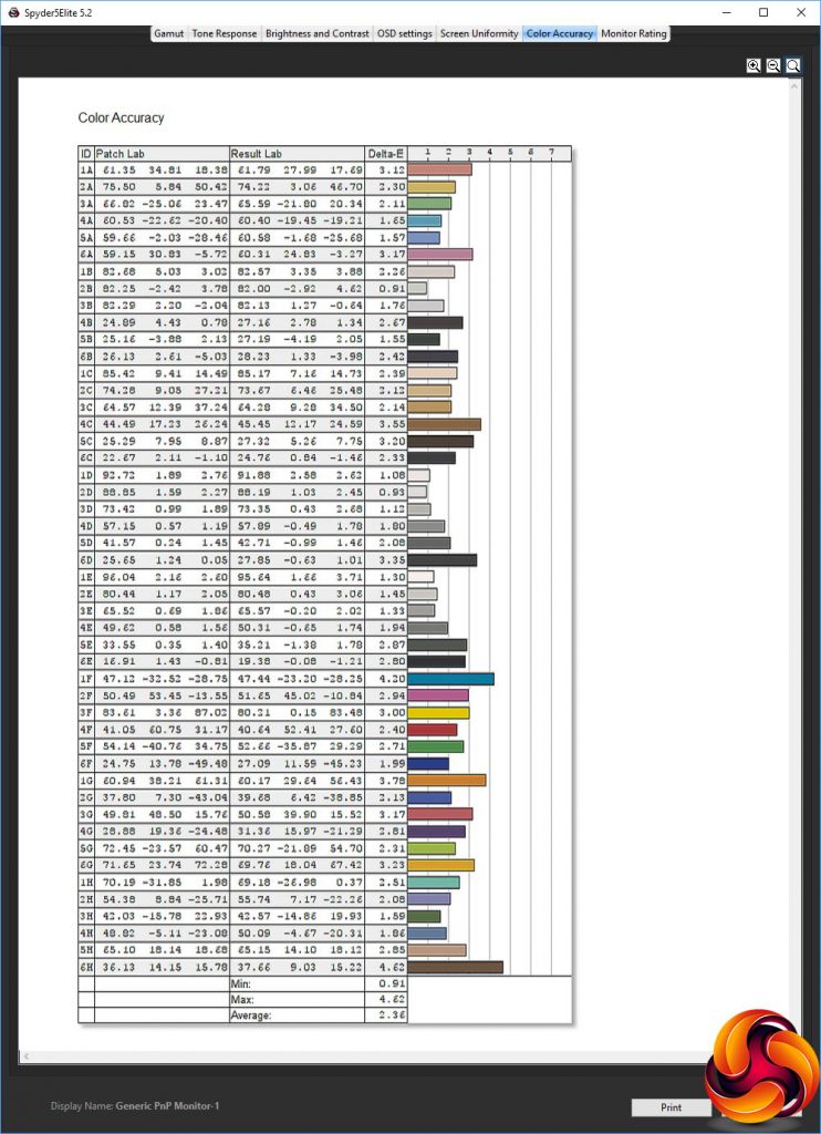 - The colour accuracy, expressed as a Delta E ratio, with a result under 3 being fine for normal use, and under 2 being great for colour-accurate design work.