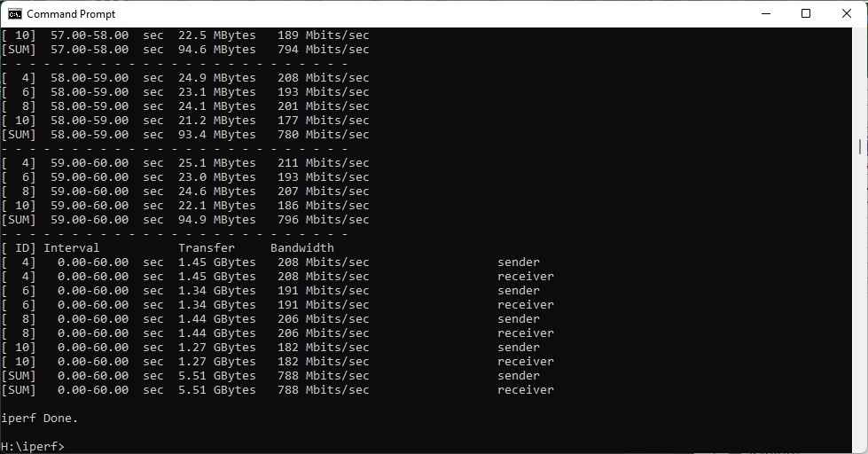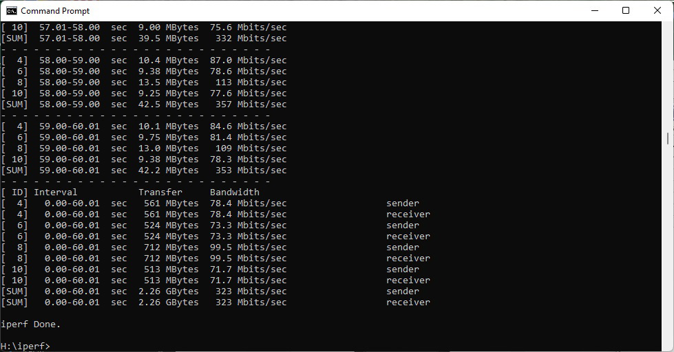 At 5m, the results are similar, with an acceptable but not outsanding 248Mbits/sec.