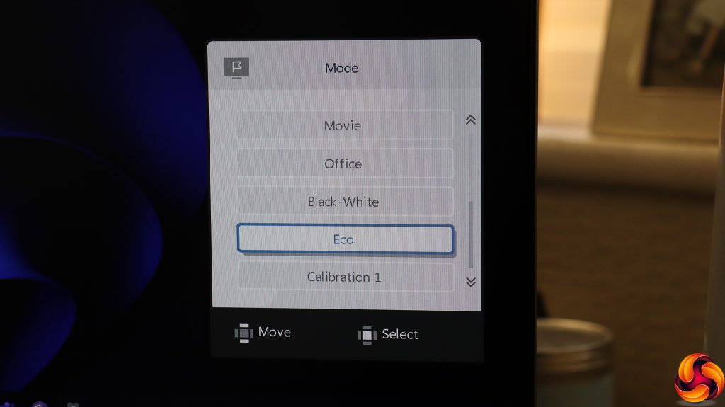 Then there are Movie and Office, for more general entertainment and activity. The Black-White option, as the name suggests, is monochromatic, and Eco mode drops brightness to save power. Finally there are three Calibration options, which are actually user slots to save your own setups once the monitor is configured for specific activities.