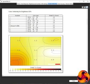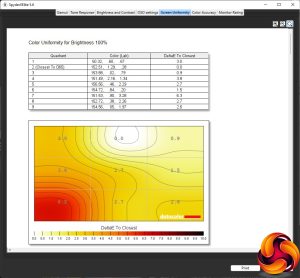 Our main test involves using a DataColor SpyderX Colorimeter to assess a display’s image quality. The device sits on top of the screen while the software generates colour tones and patterns, which it compares against predetermined values to work out how accurate the screen is.