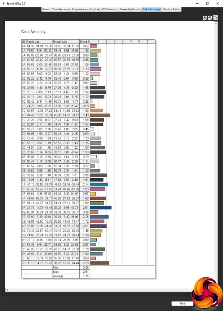 Unfortunately, the colour accuracy had gone down, with an average deviation of 1.36. This is still a great result, but shows that manual calibration isn't worth bothering with for this monitor.