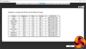 - A monitor’s contrast ratio at various brightness levels in the OSD.