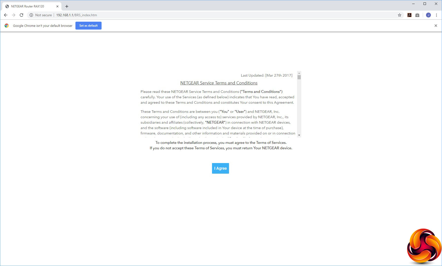 When you first aim a browser at the AX12's default IP address, you're met with some terms and conditions to agree to. You're then guided through an initial setup wizard that checks your Internet connection, prompts you to set up an admin account followed by WiFi SSIDs and passwords.