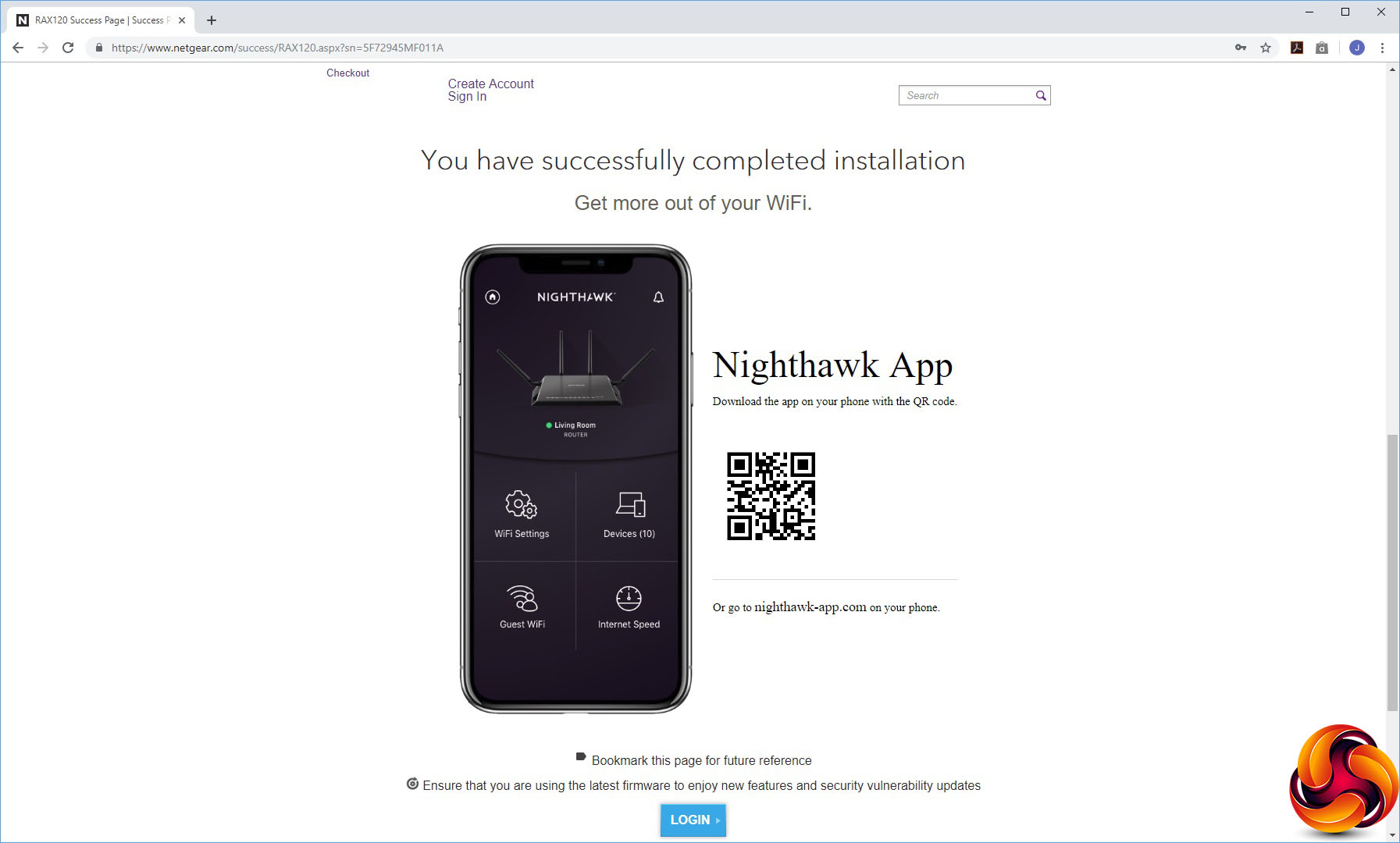 Then it will check for updates and install any new firmware it finds. Finally, you will be prompted to register the device with NETGEAR and download the Nighthawk App. Your AX12 will finally be ready to use after this.