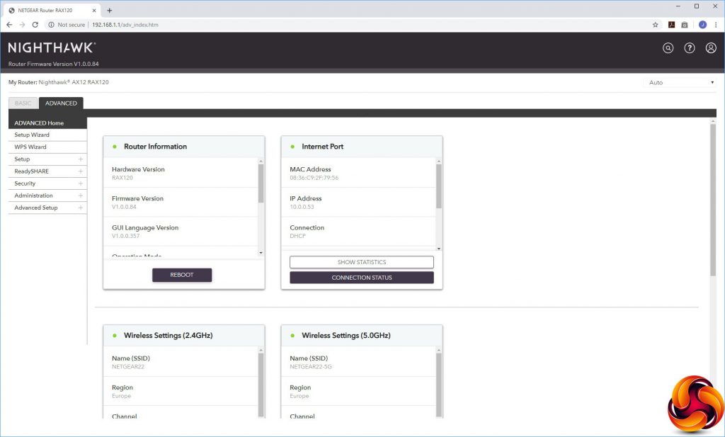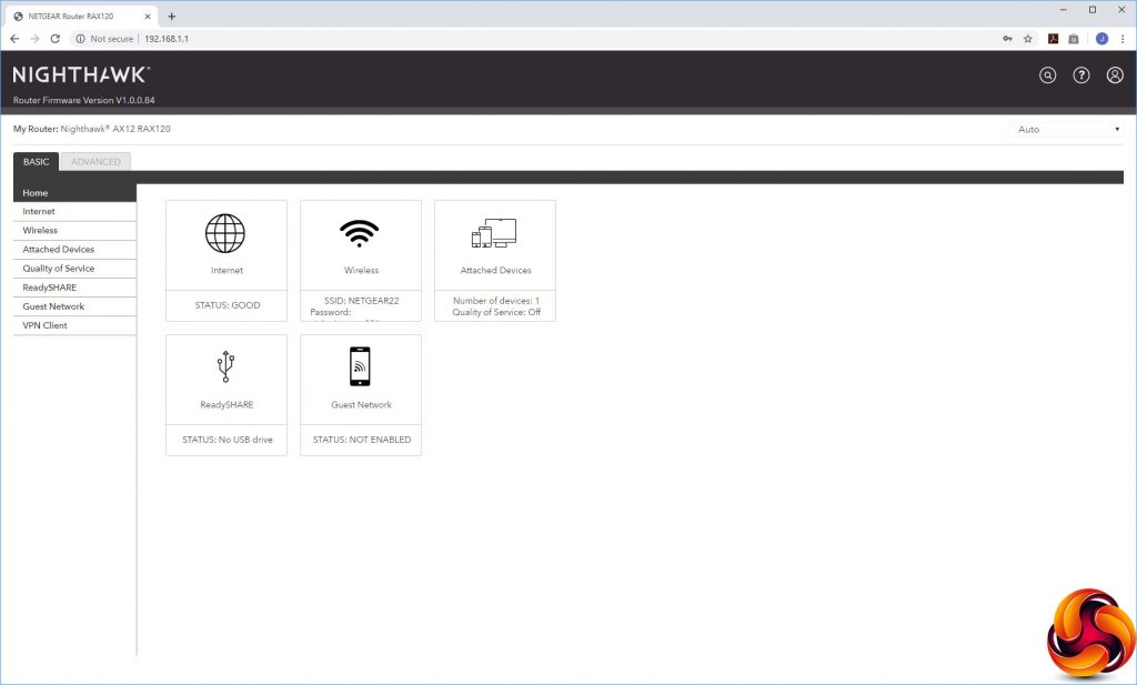 After you've logged into the system again, the Nighthawk Web interface is revealed. It has had a bit of a redesign, but this is more aesthetic than functional. The options are all pretty much in the same place as they have been for some years now. The initial Home screen presents an overview of the router's status.