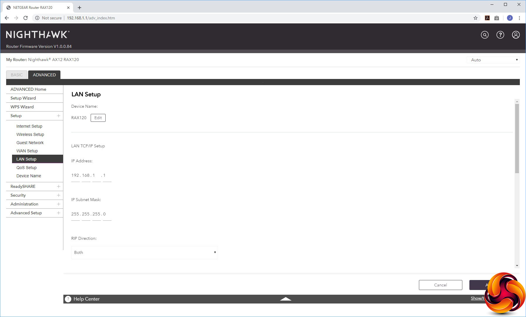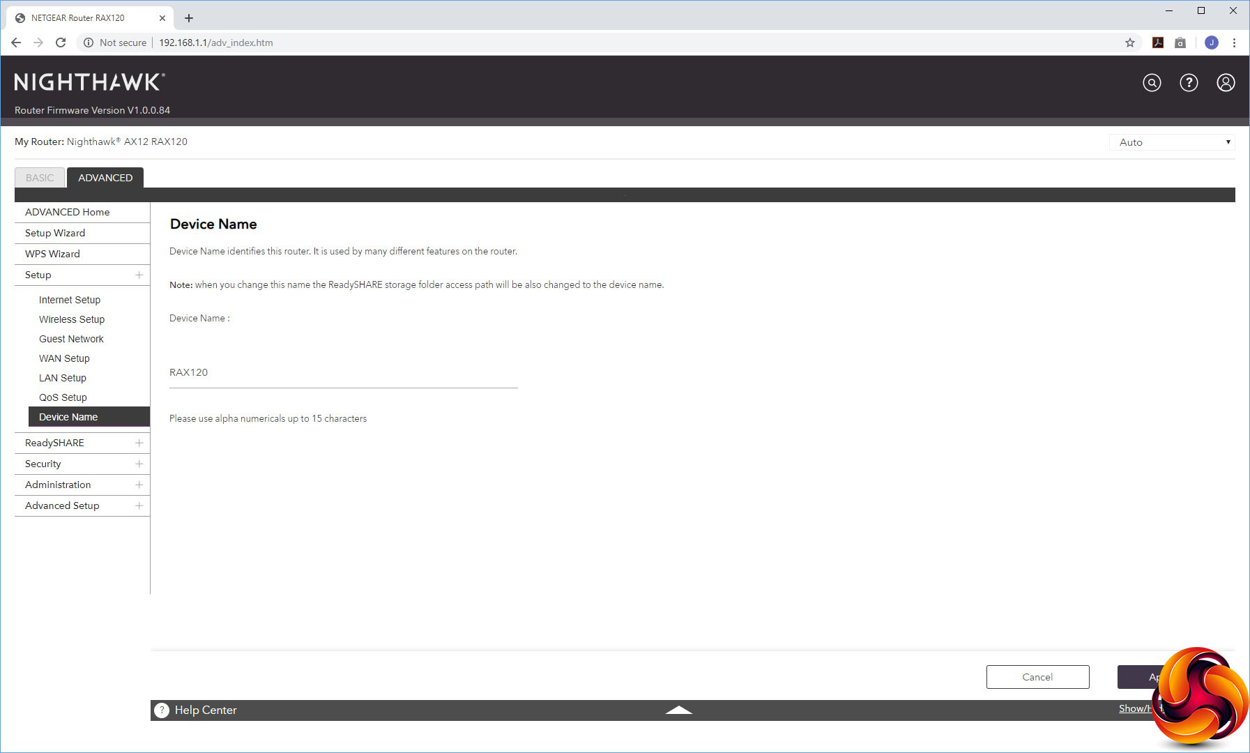 You can change the IP range used and device name in the LAN Setup, whilst QoS Setup offers the same parameters as the Basic version. Finally, there's a separate menu option for changing the device name from the default of “RAX120”.