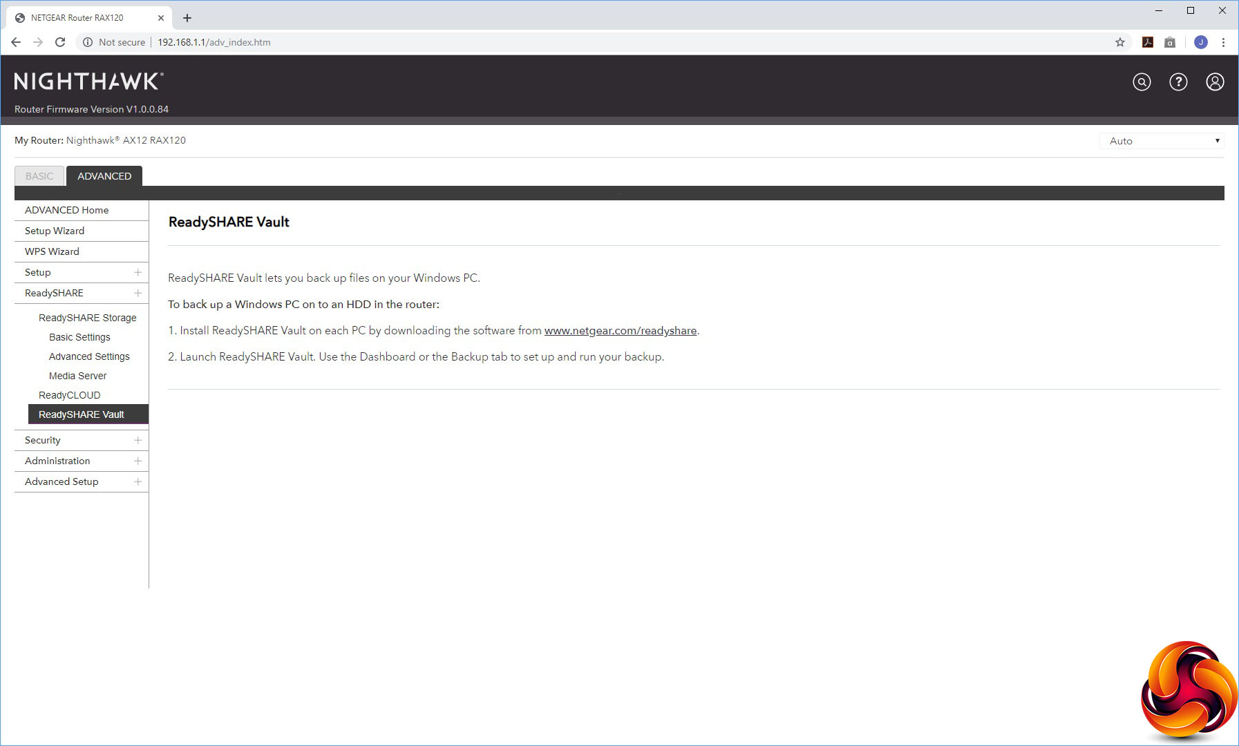 The ReadySHARE system allows you to share a USB thumb drive attached to the AX12 either just across the local network, or externally, or use it as a ReadySHARE Vault cloud backup system.