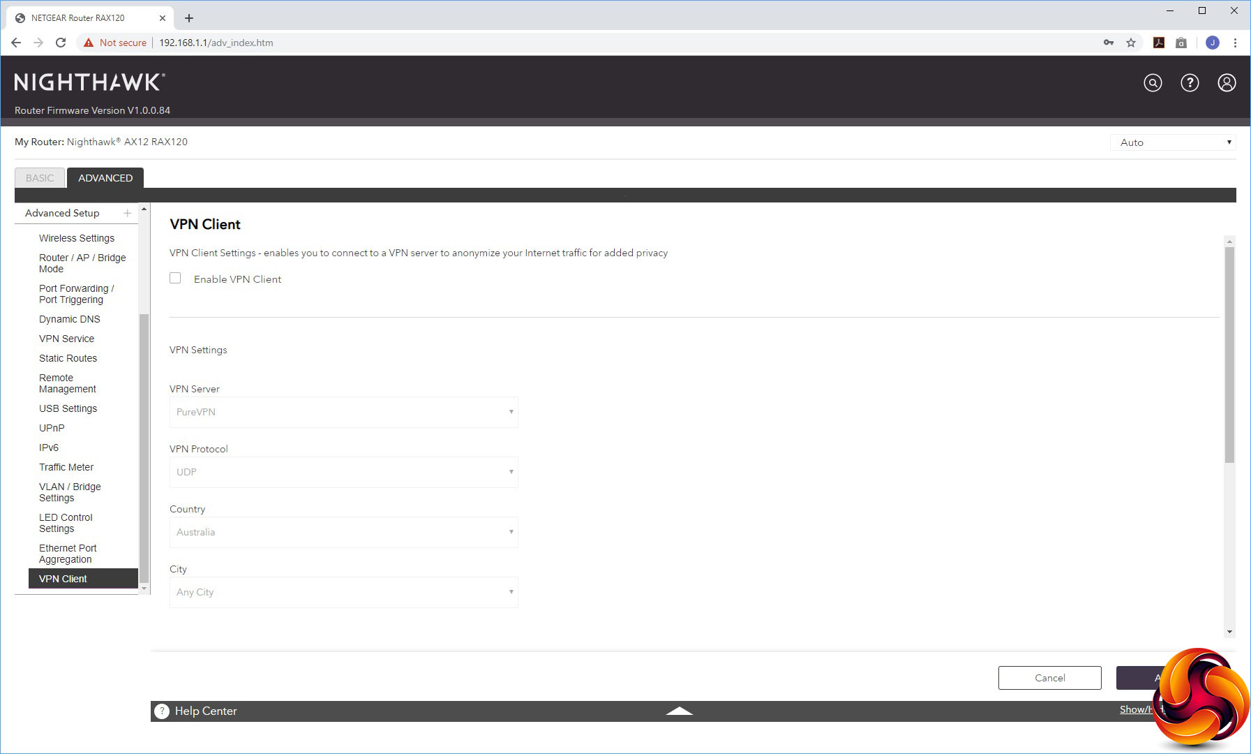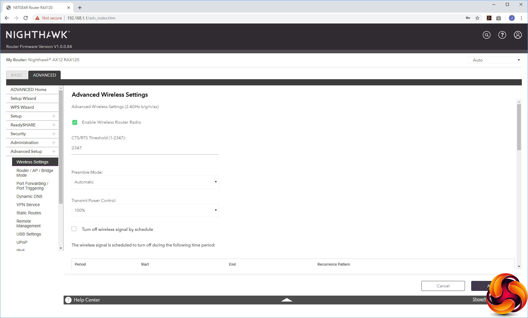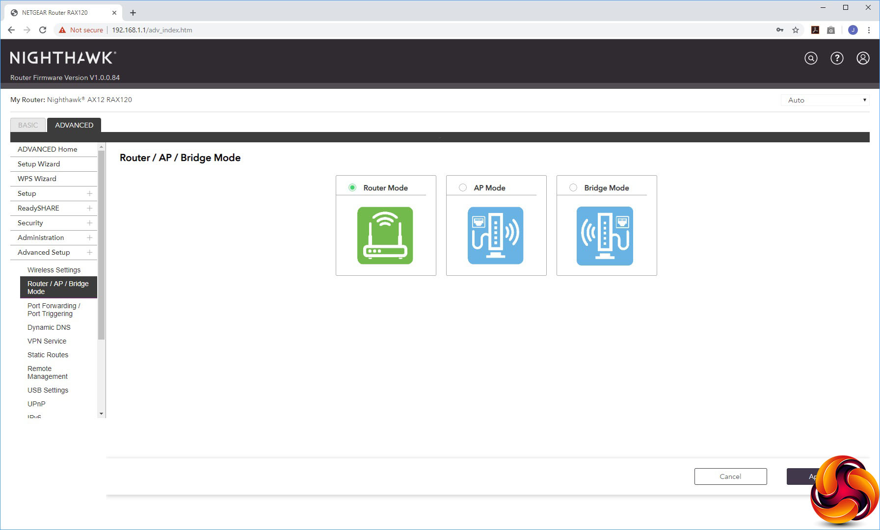 The Advanced Settings houses a smorgasbord of useful capabilities, starting with more detailed control over the wireless radios. You can select whether the AX12 operates in AP or Bridge mode instead of the default Router mode. The port forwarding facilities are found here, although the built-in options are as antiquated as always with NETGEAR routers, including applications like NetMeeting, Quake II/III and Real-Audio. NETGEAR really needs to update this list.