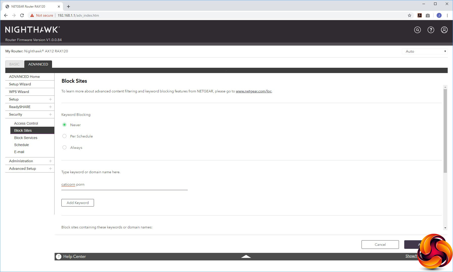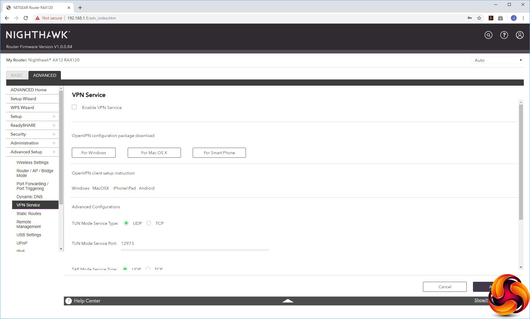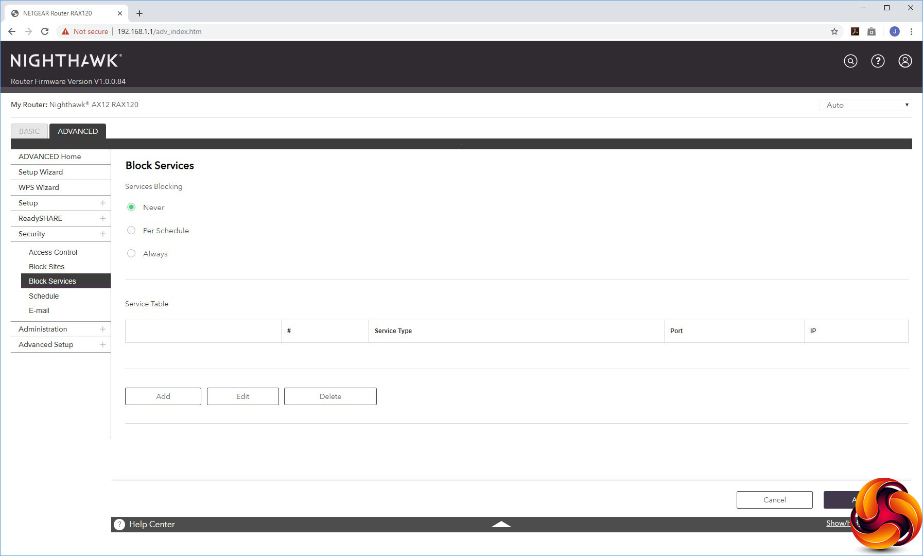 The Advanced Settings houses a smorgasbord of useful capabilities, starting with more detailed control over the wireless radios. You can select whether the AX12 operates in AP or Bridge mode instead of the default Router mode. The port forwarding facilities are found here, although the built-in options are as antiquated as always with NETGEAR routers, including applications like NetMeeting, Quake II/III and Real-Audio. NETGEAR really needs to update this list.