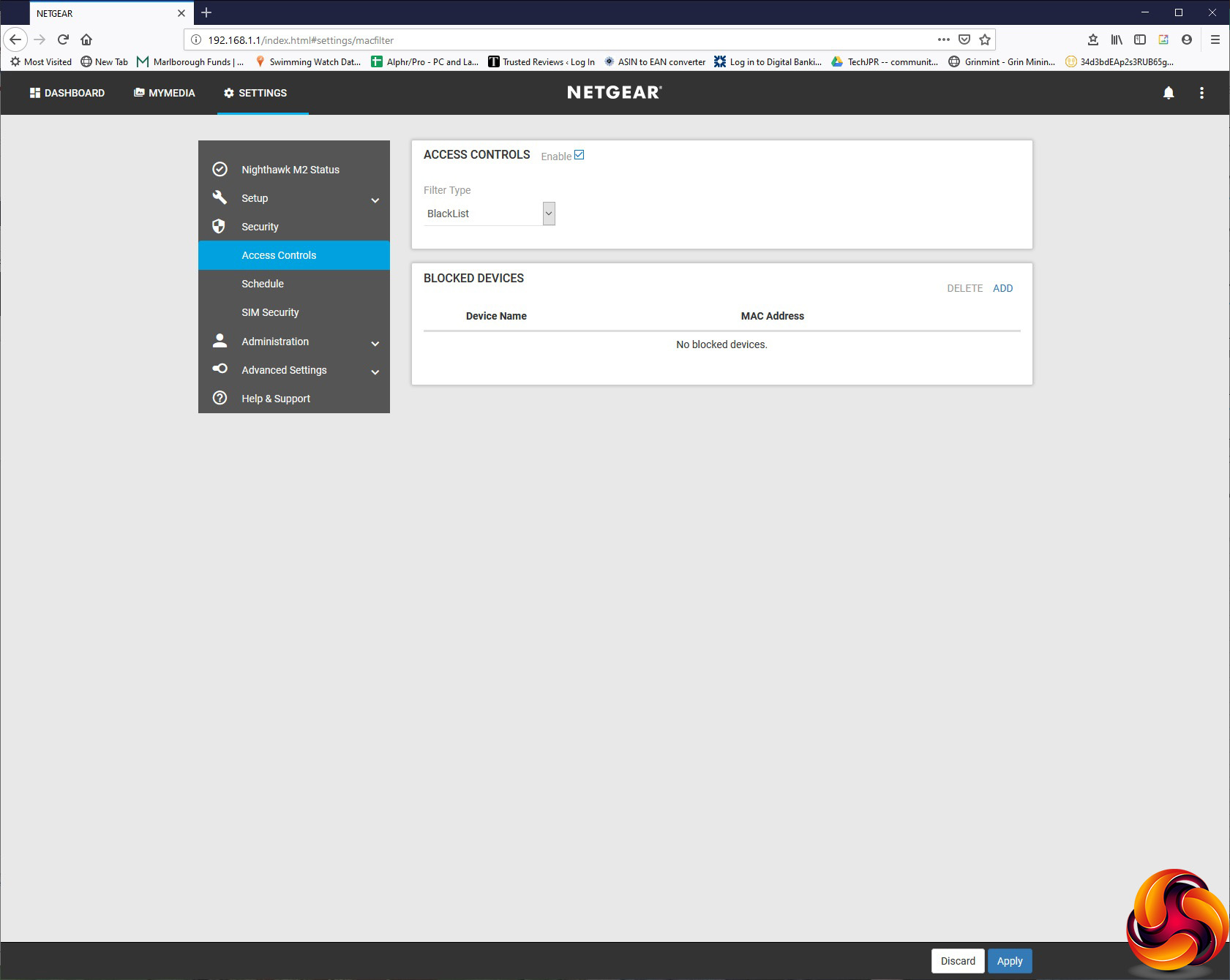 Security includes familiar options such as blacklisting certain devices by MAC address from gaining access. You can also set up a time schedule for when the hot spot is accessible for client devices, and SIM Security lets you add a PIN that must be entered every time you turn the router on before access is possible.