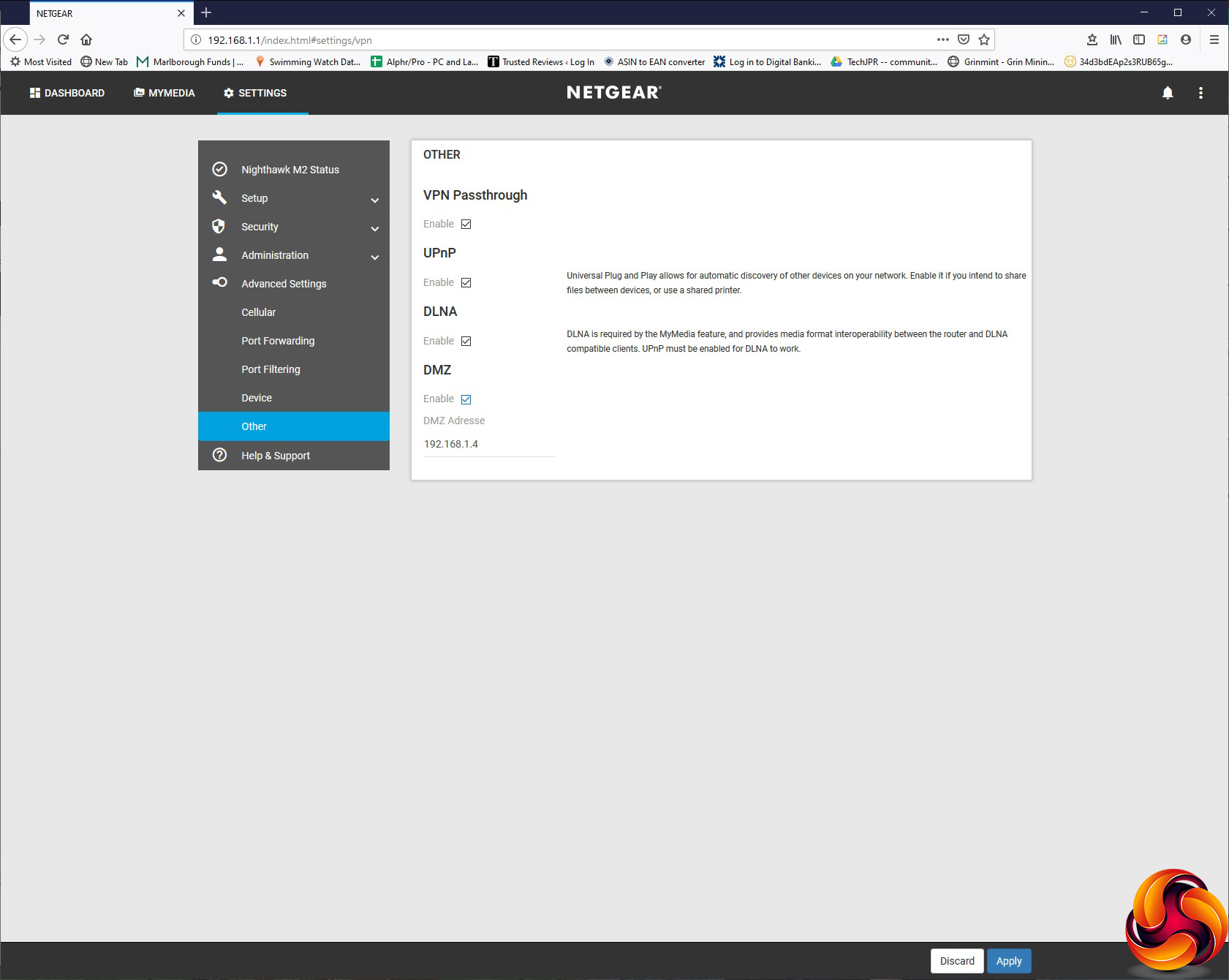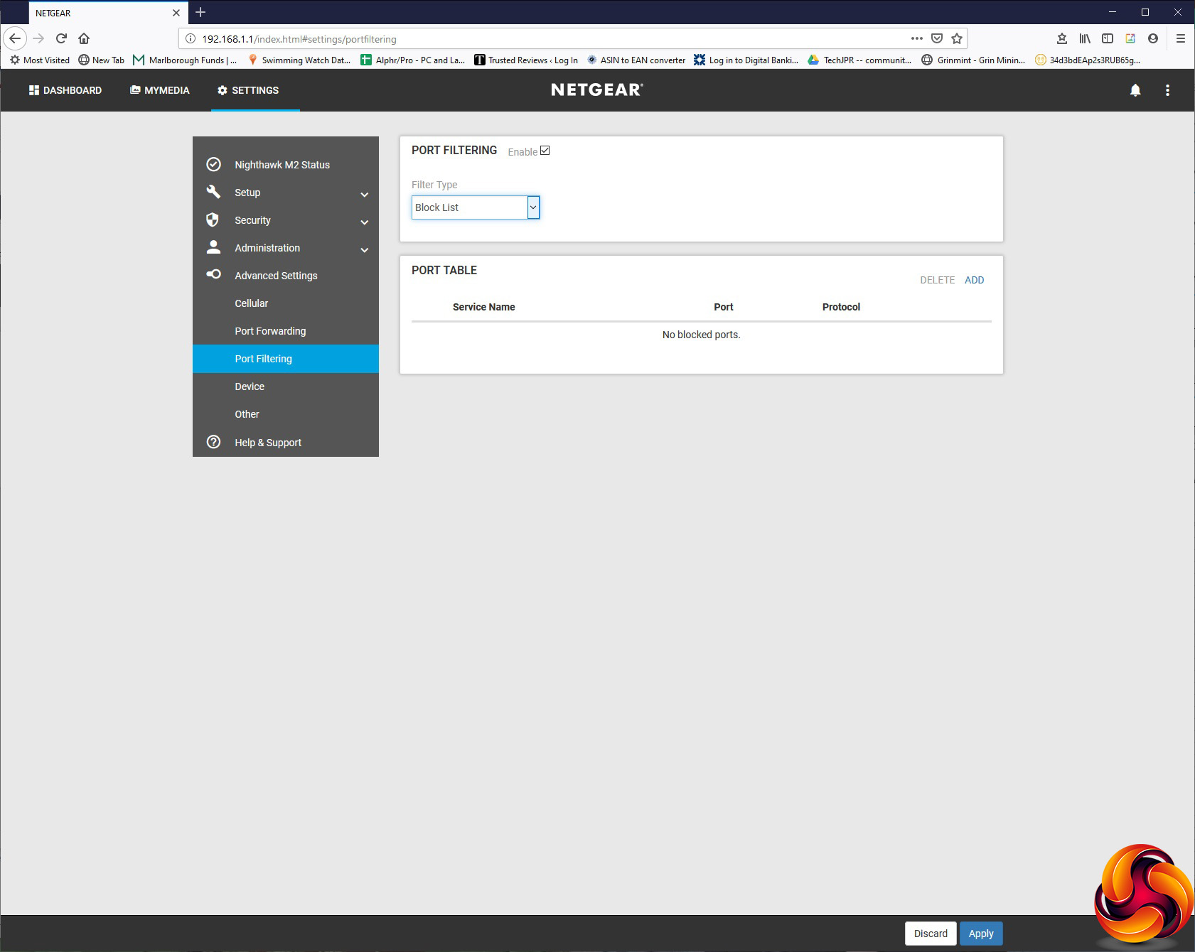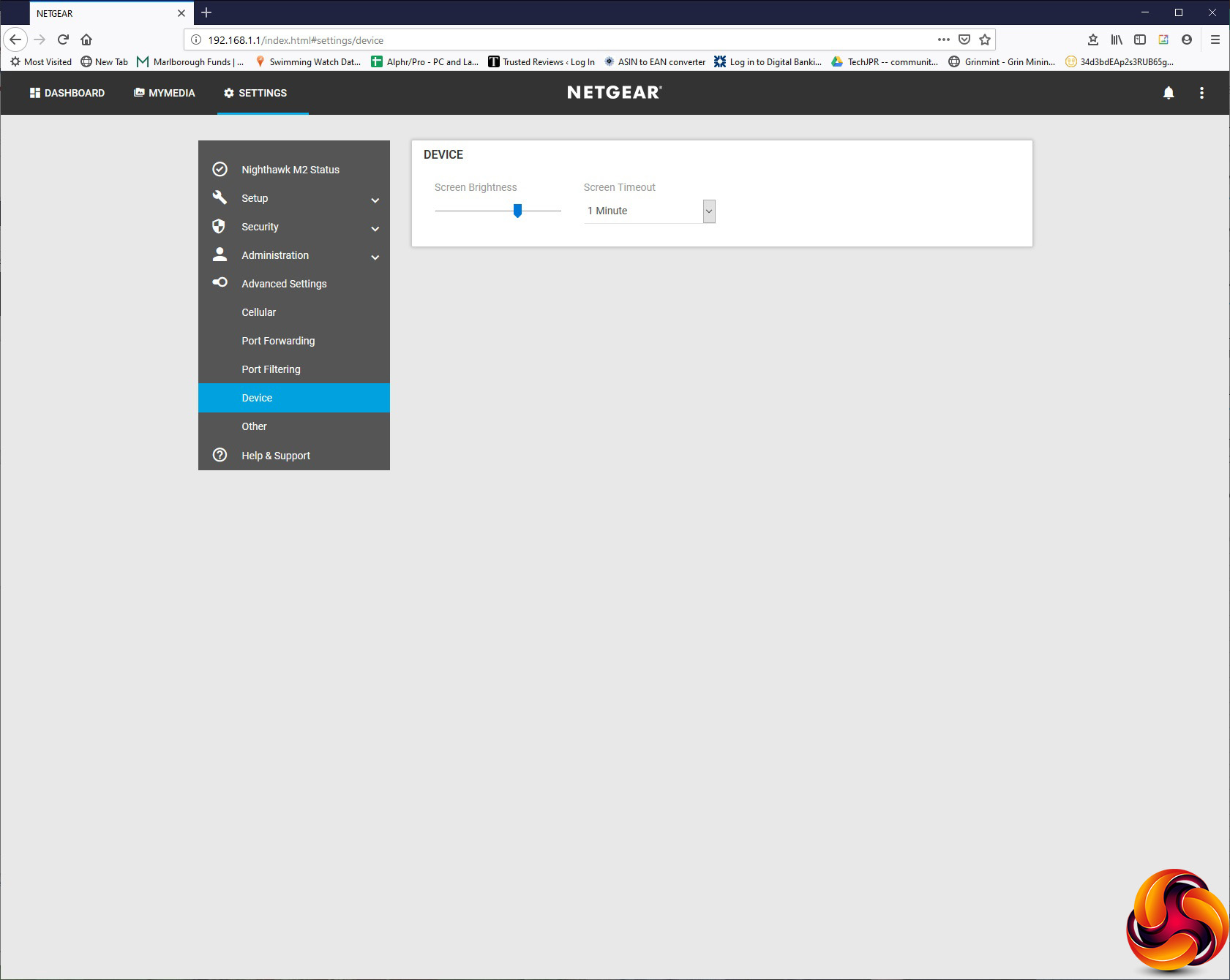 The Advanced Settings let you configure your mobile data connection in more detail via the Cellular section. When we swapped to the Vodafone SIM, we had to use this section to edit the APN settings for our mobile data connection. You can set up Port Forwarding, although there aren't any popular application presets here. You can filter out services by port, and change how the screen brightness and timeout behaves. Finally, you can enable VPN passthrough, UPnP, DLNA support for USB-attached storage, and nominate an IP address as the DMZ.