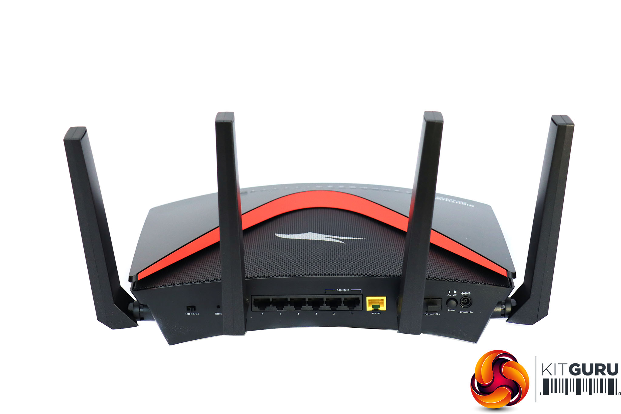 For use with the SX10, you will need a module to convert the SFP+ to 10Gbit over copper, and a Cat 6a Ethernet cable that supports 10Gbit speeds (regular Cat 5 cables don't). Be prepared to pay £300 for a module like NETGEAR's AXM765. Although the SFP+ connection allows flexibility, we're not really sure why NETGEAR didn't just put a 10Gbit copper Ethernet port on the XR700 like the SX10, if they meant the two to work together. Not many users are going to pay another £300 for the AXM765 module. Port aggregation seems like the much more viable and cost-effective option, albeit slower.