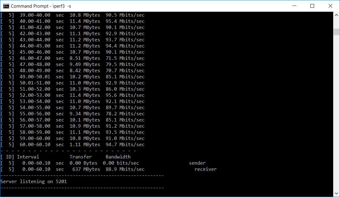 With the notebook connected via Gigabit Ethernet to the router, the throughput was recorded as 948Mbits/sec, which shows you're getting near wire speed from the LAN ports.