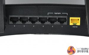 There is a healthy array of Ethernet ports on the rear, too – seven in total. The yellow one is exclusively for the broadband modem, unless you switch to AP mode, and ports 1 and 2 can be aggregated (with a compatible dual-LAN NAS device) to make a single 2Gbit Ethernet pipeline, able to serve the contents of a fast network storage device to multiple clients without causing a bottleneck. There are a couple of USB 3 ports on the side of the device, too.