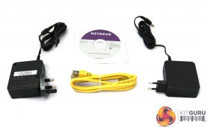 Strangely, the two different European plug types have their own separate power adapters in the box. Just a single Ethernet cable is included, though, in a fetching yellow hue. This seems a little miserly with all the ports on offer.
