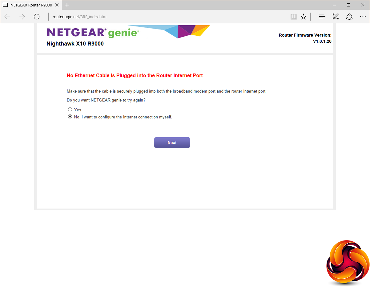 When you first connect to the R9000, the genie interface pops up in a browser window as the unit tries to connect to your broadband automatically.