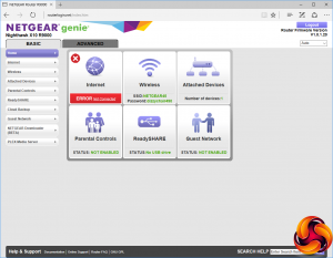 Once you've configured your broadband, or chosen to set this up manually, you get the choice of Basic or Advanced management interfaces, with the Basic one the default. This provides icon access to the main features, including the Internet connection, wireless security settings, attached devices, parental controls, the ReadySHARE interface (for configuring how attached USB devices are treated), and turning the guest network off or on.