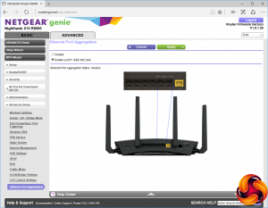 There's support for No-IP dynamic DNS as well as NETGEAR's own version. You can set up VPN connections, static routes, and remote management IPs. There's a Traffic Meter to limit overuse of the Internet connection, support for VLANs and bridge groups, and control over whether or not the first two Gigabit Ethernet ports can be aggregated.