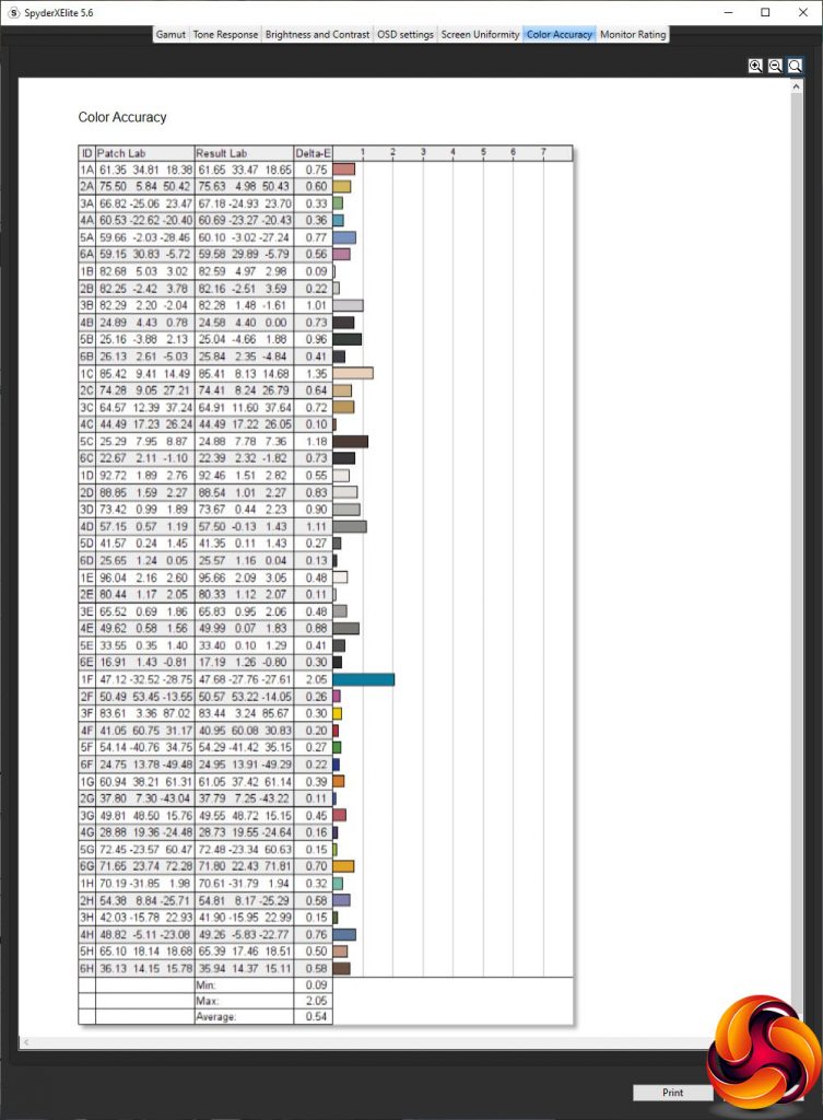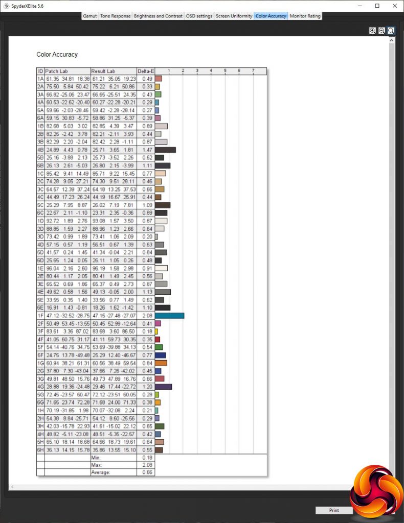 - The colour accuracy, expressed as a Delta E ratio, with a result under 3 being fine for normal use, and under 2 being great for colour-accurate design work.
